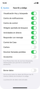 Pulsar el indicador junto a "Borrar datos" para activar o desactivar la función.