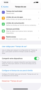 Pulsar el indicador junto a "Compartir entre dispositivos" y seguir las indicaciones de la pantalla para activar o desactivar el Tiempo de uso conjunto de todos los dispositivos.
