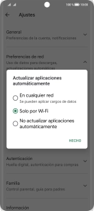 Para activar la actualización automática de apps a través de la red móvil, pulsar En cualquier red.