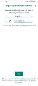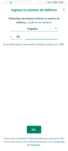Pulsar SIG.. Esperar hasta que el móvil haya recibido un SMS confirmando el número de teléfono.