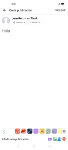 Escribir un texto y pulsar PUBLICAR.