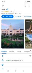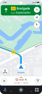 La información de la ruta aparece en la parte inferior de la pantalla y muestra la duración del viaje, la hora de llegada aproximada y la distancia al destino.