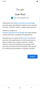 Pulsar Acepto y seguir las indicaciones de la pantalla para seleccionar los ajustes de la cuenta de Google.
