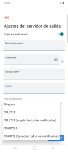 Pulsar Cuando elimine correos de Recibidos para eliminar los correos electrónicos del servidor cuando se borran del móvil.