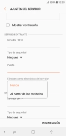 Pulsar Al borrar de los recibidos para eliminar los correos electrónicos del servidor cuando se borran del móvil.