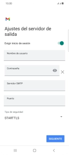 Pulsar en el campo bajo "Servidor SMTP" e introducir el nombre del servidor de correo saliente del proveedor de correo.