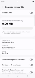 Pulsar el indicador bajo "Conexión compartida" para activar la función.